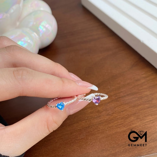 S925 Sterling Silver Heart-shaped Red Zircon Ring