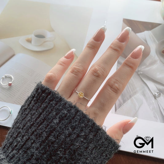S925 Sterling Silver Yellow Dripping Smiley Ring