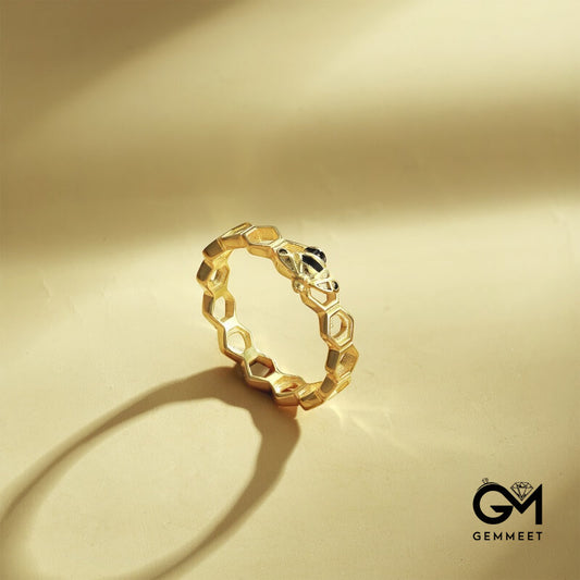 S925 Sterling Silver Honeybee Hollow Honeycomb Ring