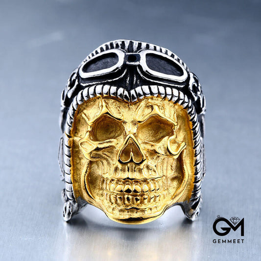 Titanium Steel Punk Engraved Skull Pilot Ring