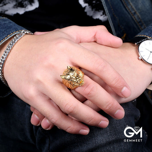 Gold Black Vintage Wolf Head Stainless Steel Ring