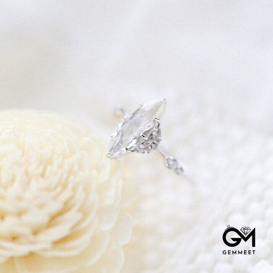 S925 White Zircon Four-leaf Clover Octet Star Ring