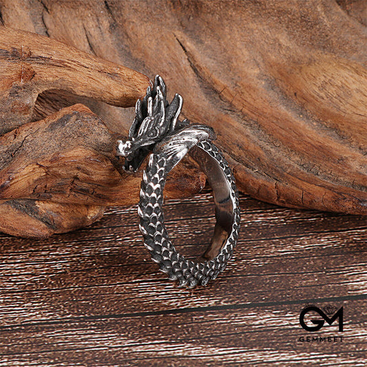 Titanium Steel Wolf Head Ring Buckle Bracelet