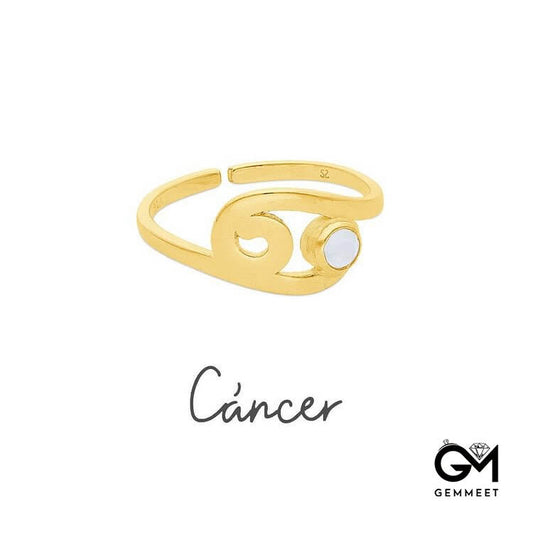 Crystal Zodiac Titanium Steel Open Adjustable Ring