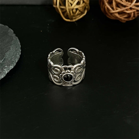 Black Onyx Ethnic Pattern Ring
