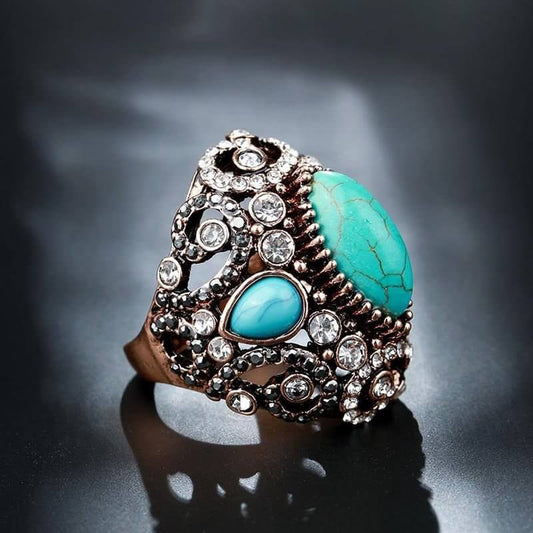 Luxury Big Antique Creative Vintage Turquoise Ring