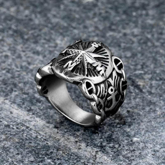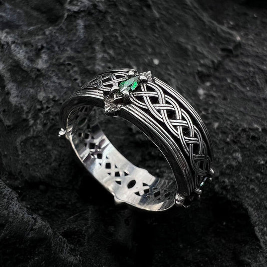 Green Gem Rope Totem Thick Adjustable Band Ring