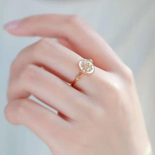 Retro Crescent Moonstone Feminine Energy Ring