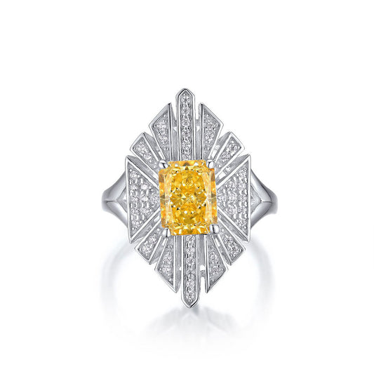 White Gold Shield Shape Yellow Gem Radial Halo Ring