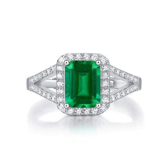 White Gold Halo Emerald Hollow Ring
