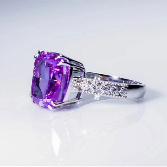 White Gold Bezel Setting Purple Gem Retro Ring