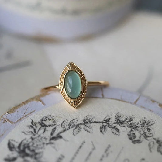 Palace-style Buqirati Weave-carved Gold Craft Inlaid with Imitation Chalcedony Ring