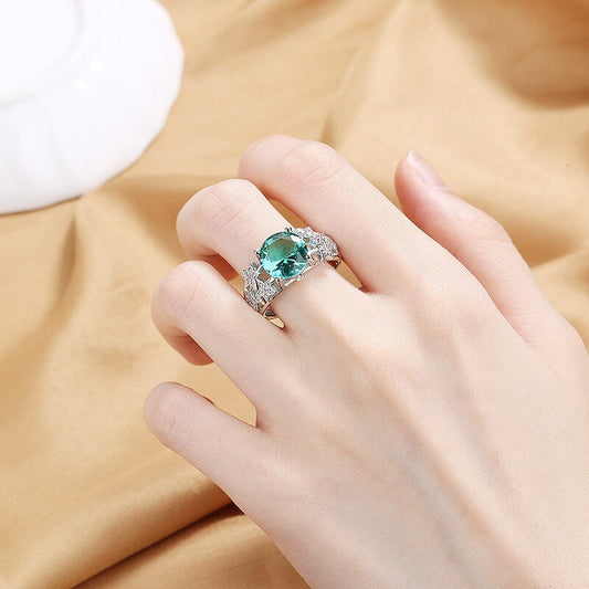 Retro Style Maldives Blue Green Open Ring Fashion Hollow Star Ring