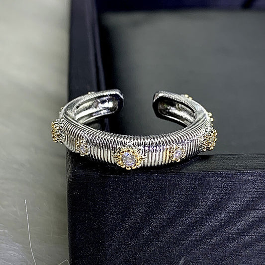 Retro Palace Style Butcher Silk Craft Ring Two-color Gold-plated Light Luxury Ring with Diamond Carving