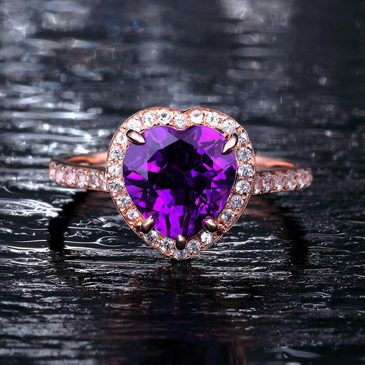 Imitation Amethyst Heart Ring Fashion Imitation Tourmaline Color Gem Heart Shape Amethyst Ring