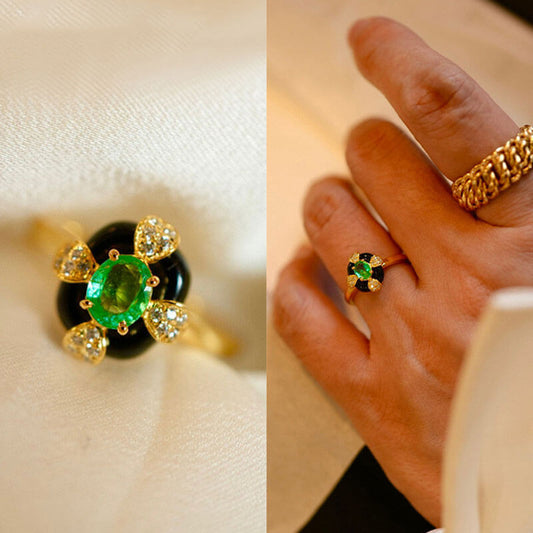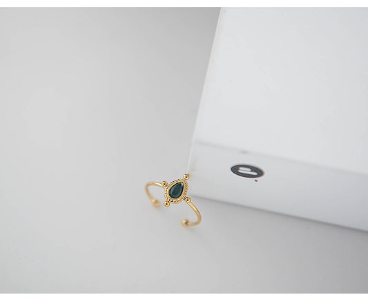 Retro Glue Black Agate High-quality Emerald Open Ring Simulation Natural Emerald Ring