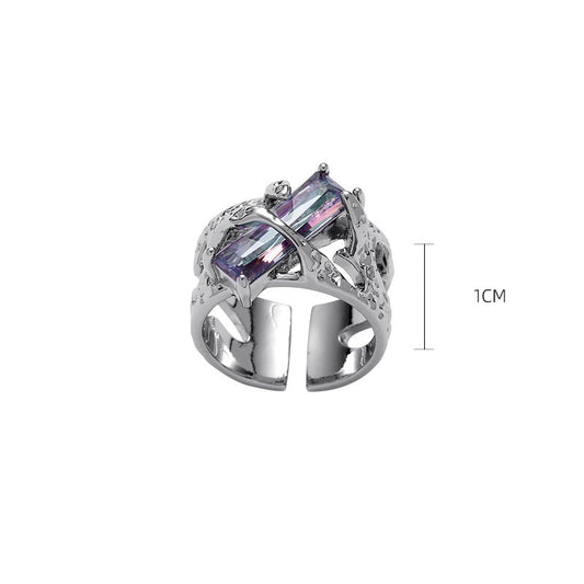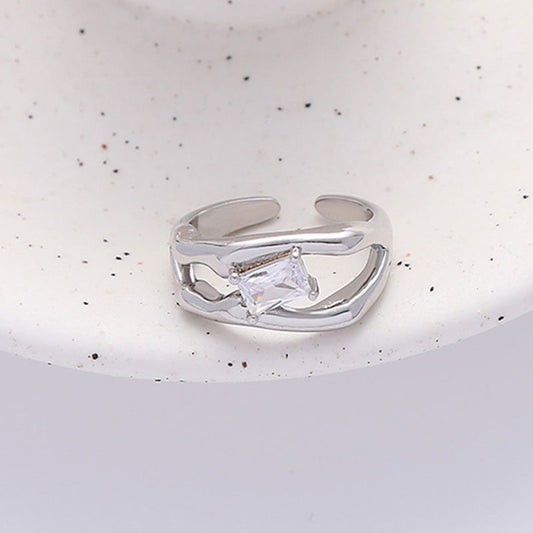 Square Zircon Hollow Light Luxury High-end Hot Girl Ring