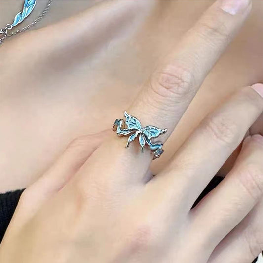 Pear Shape Blue Sapphire French Vintage Blue V-Shaped Multi-Layered Adjustable Ring