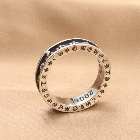 Titanium Steel Snowflake Inlaid Zircon Retro Trendy Men's Ring