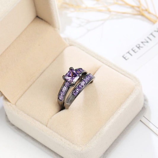 Black Gold Double Layer Purple Stones Love Couple Rings