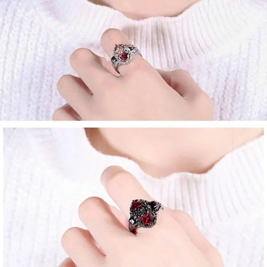 Retro Skull Love Heart Ruby Ring