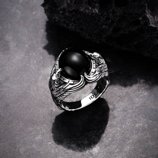 Vintage Eagle Sterling Silver Black Onyx Rings