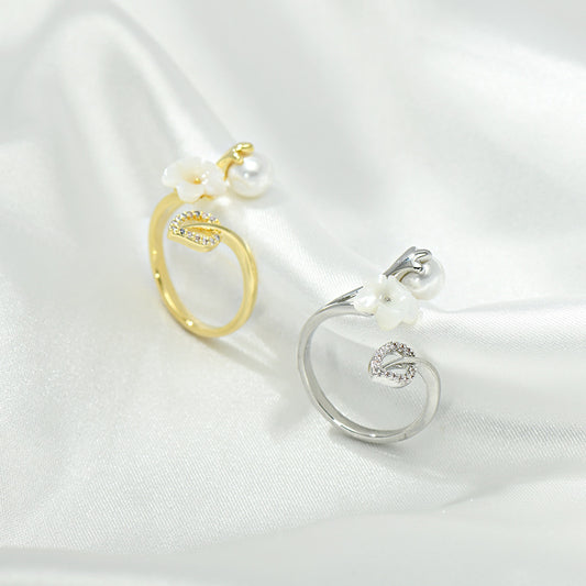 Temperament Sense Flower Leaves Copper Encrusted Zircon Ring