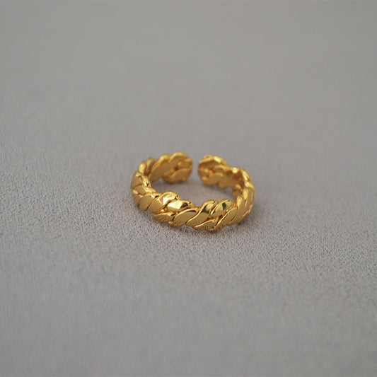 Niche Fashion Design Hand Woven Brass Gold Plated Open Ring
