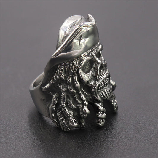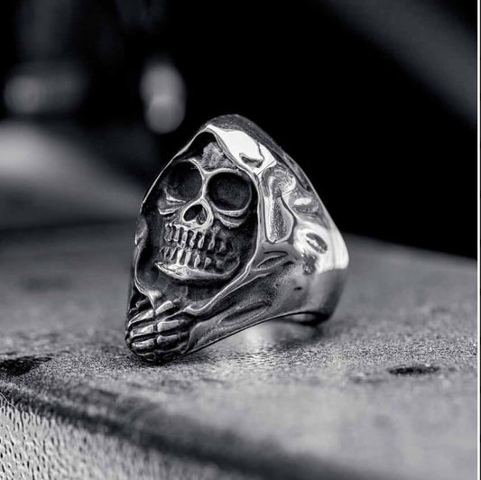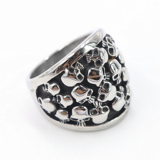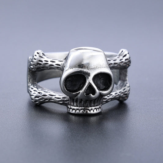 Personality Circle Titanium Steel Vintage Skull Ring for Men