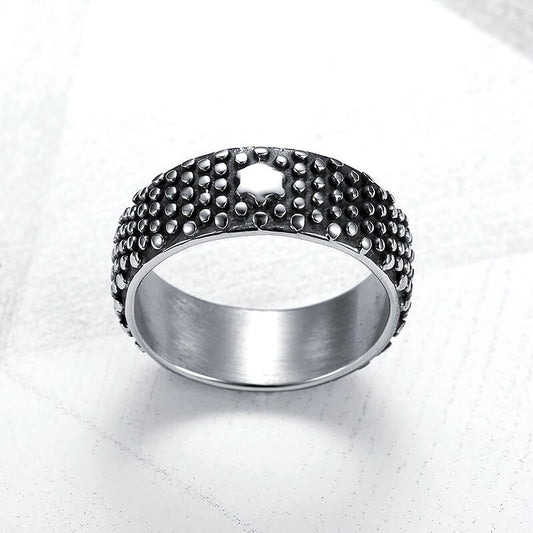 Simple Personality Round Pitted Titanium Steel Ring