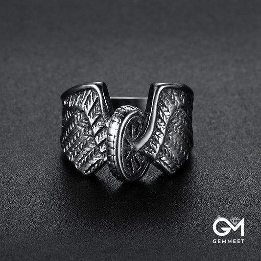 Stainless Steel Wheel Wings Ring