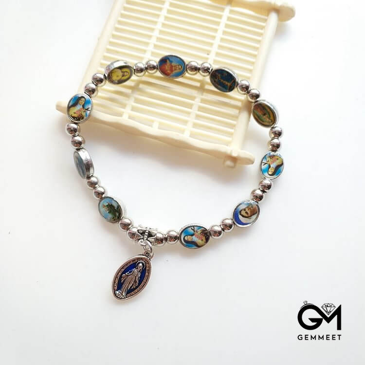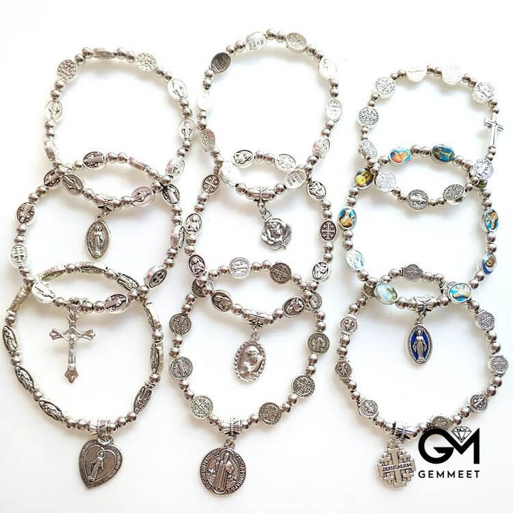 Acrylic Crystal Stretch Wire Alloy Christianity Cross Bracelet