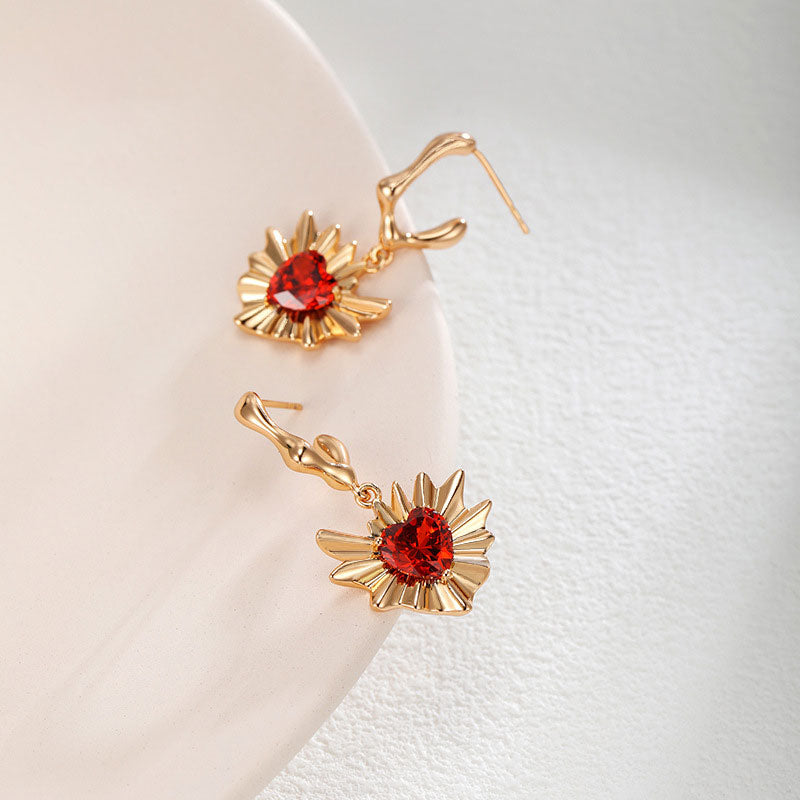 Artificial Gemstone Heart Personality Fashion Stud Earrings