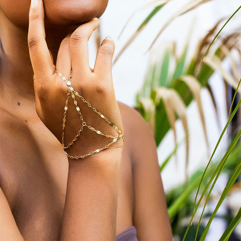 Beach Imitation Pearl Metal Chain Back Chain Fashion Simple Rhinestone Mitten Bracelet