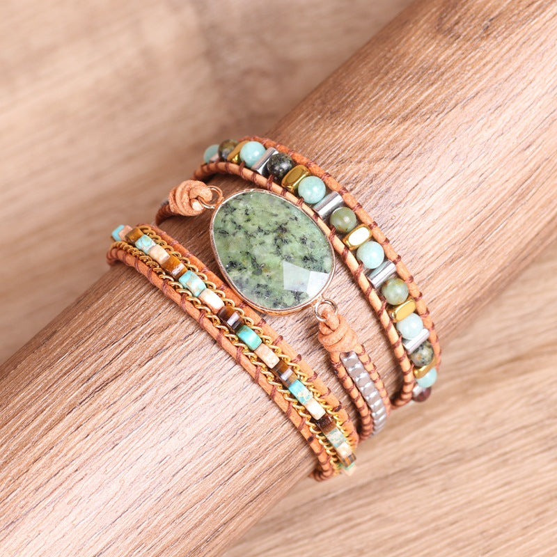 Beaded Leather Wrapped Bracelet