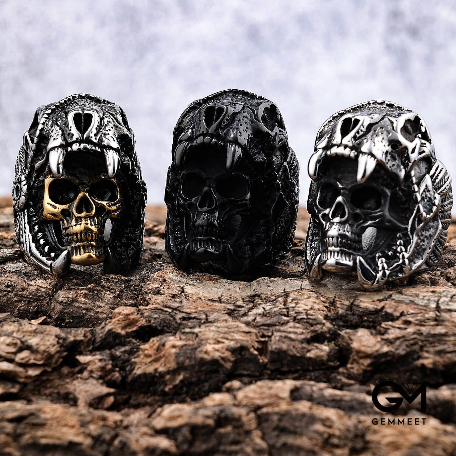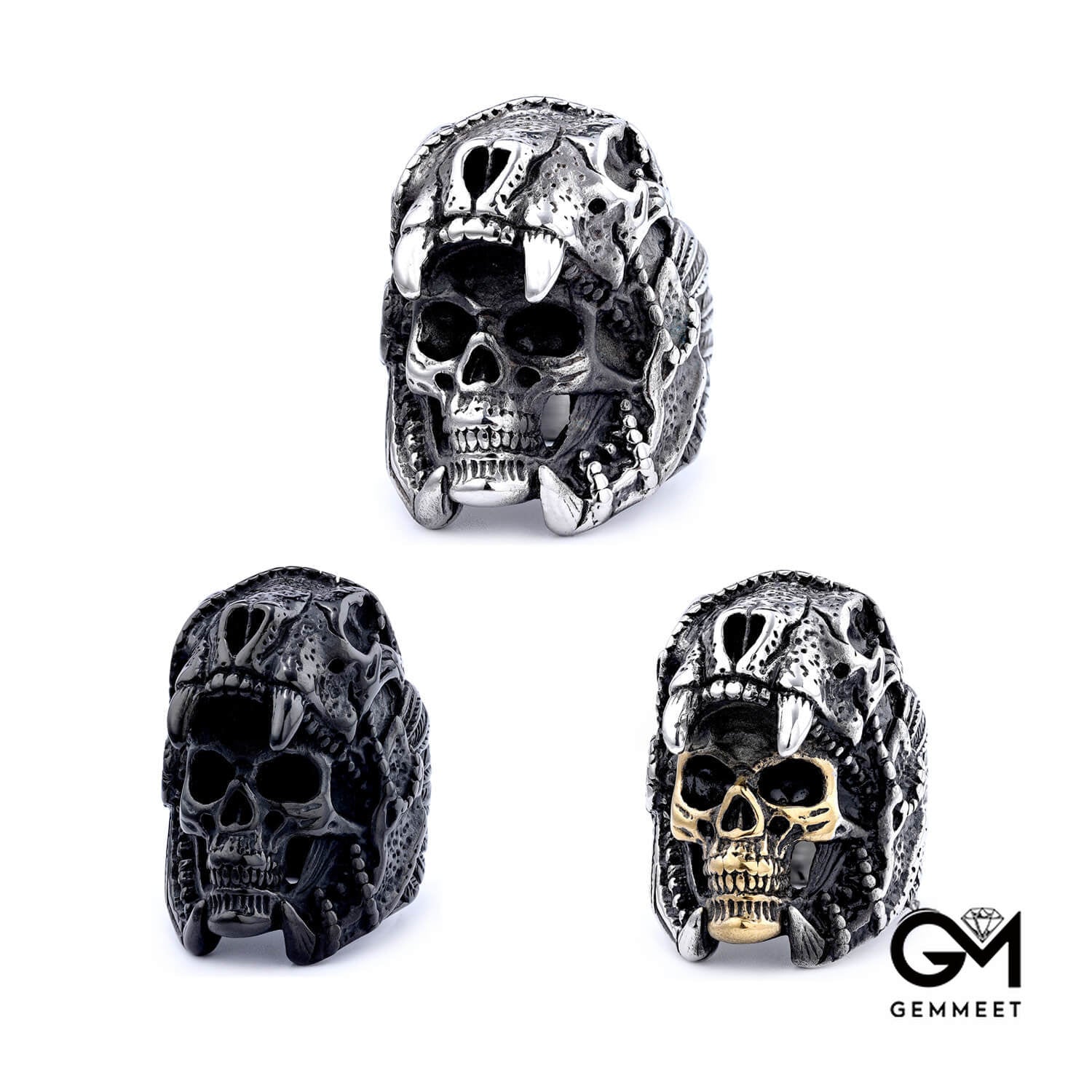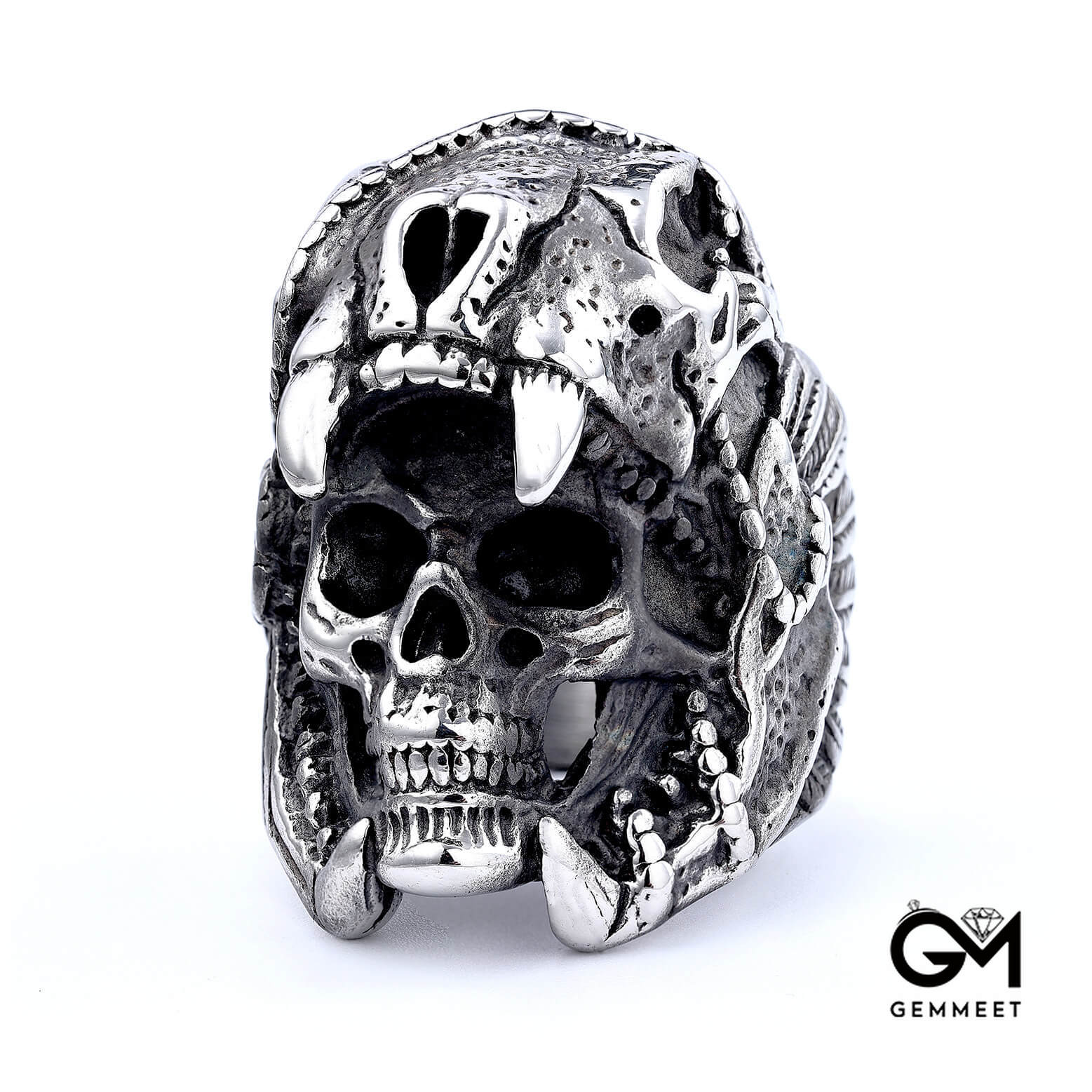 Big skull titanium steel vintage ring for men