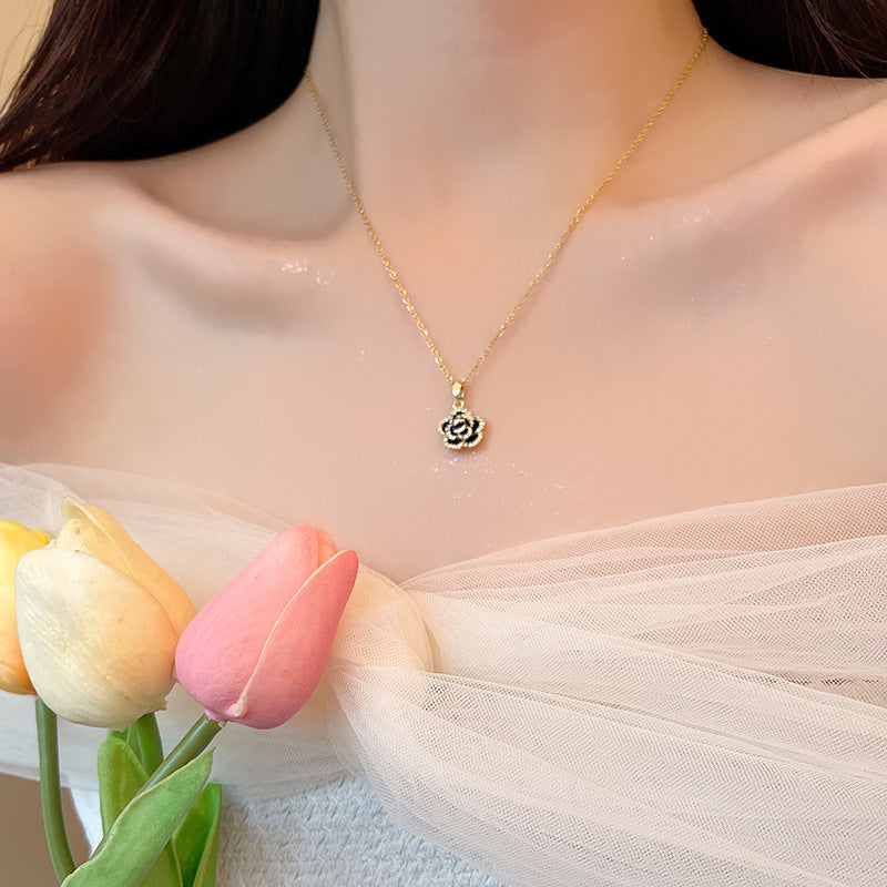 Black Camellia Titanium Steel Necklace
