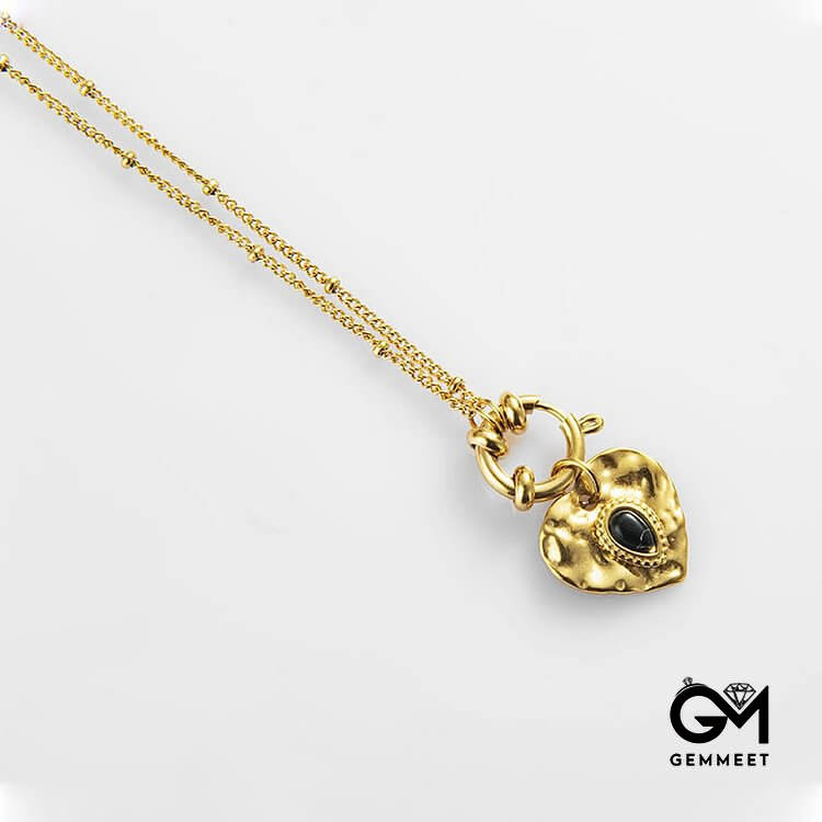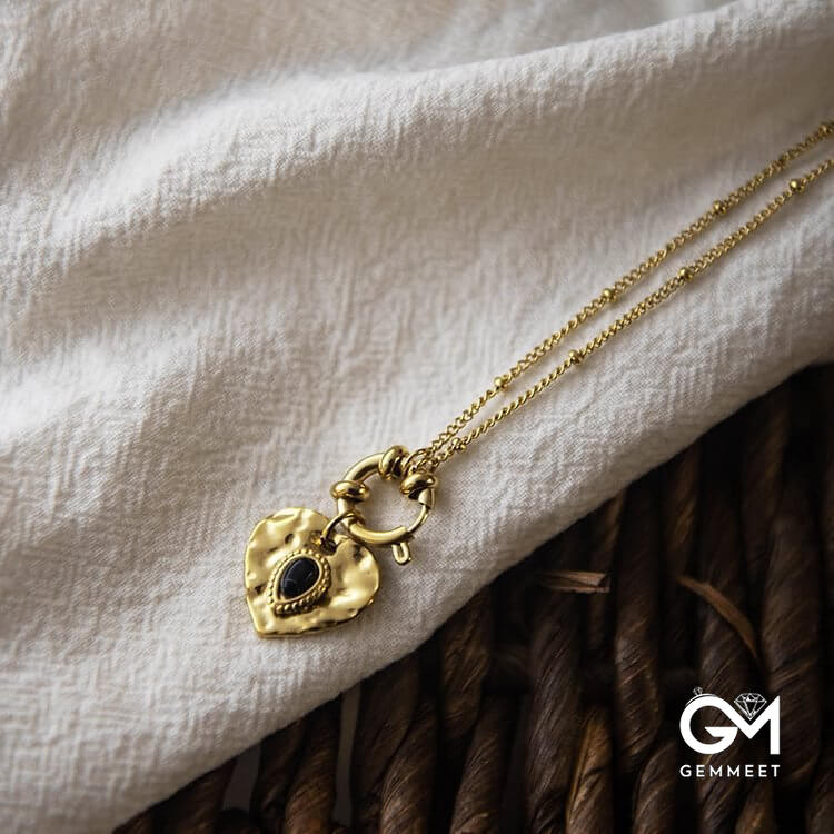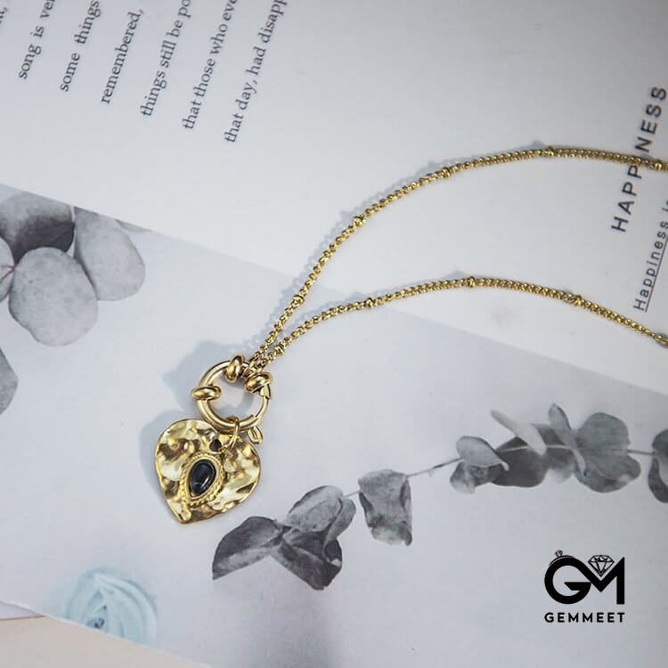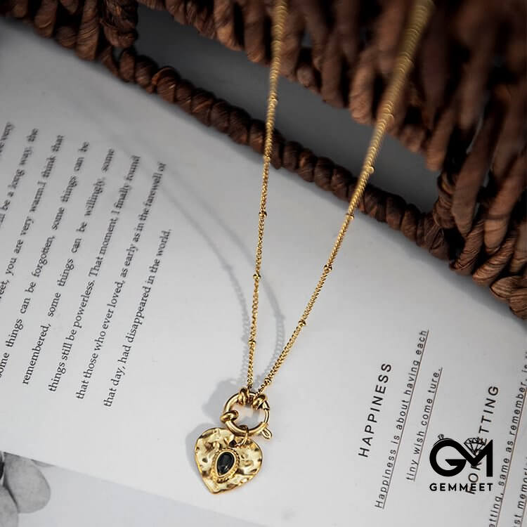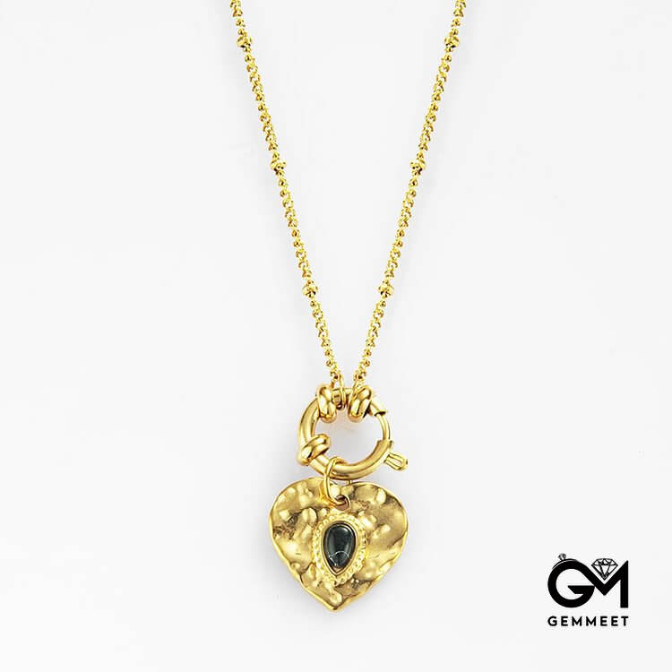 Black Turquoise Heart Titanium Steel Pendant Necklace