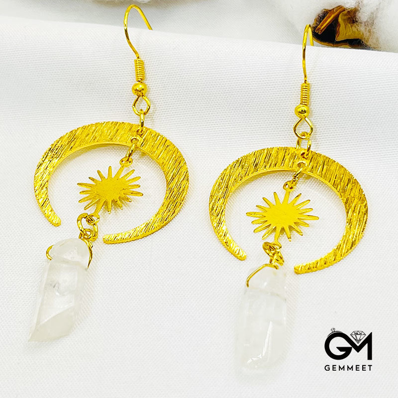 Bohemia Agate Crescent Moon Clear Crystal Earrings