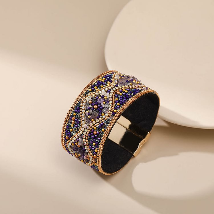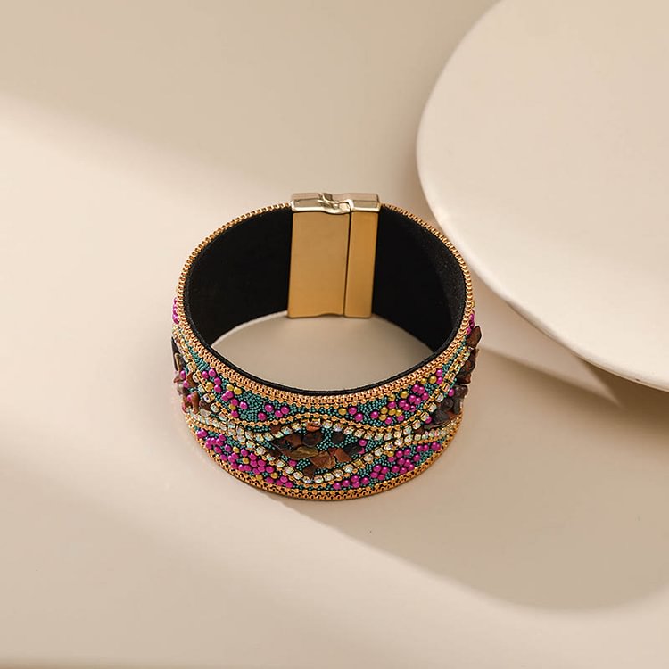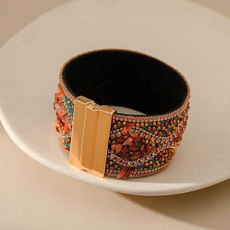 Bohemia Handmade Stone Beads Wide Magnetic Buckle Bracelet