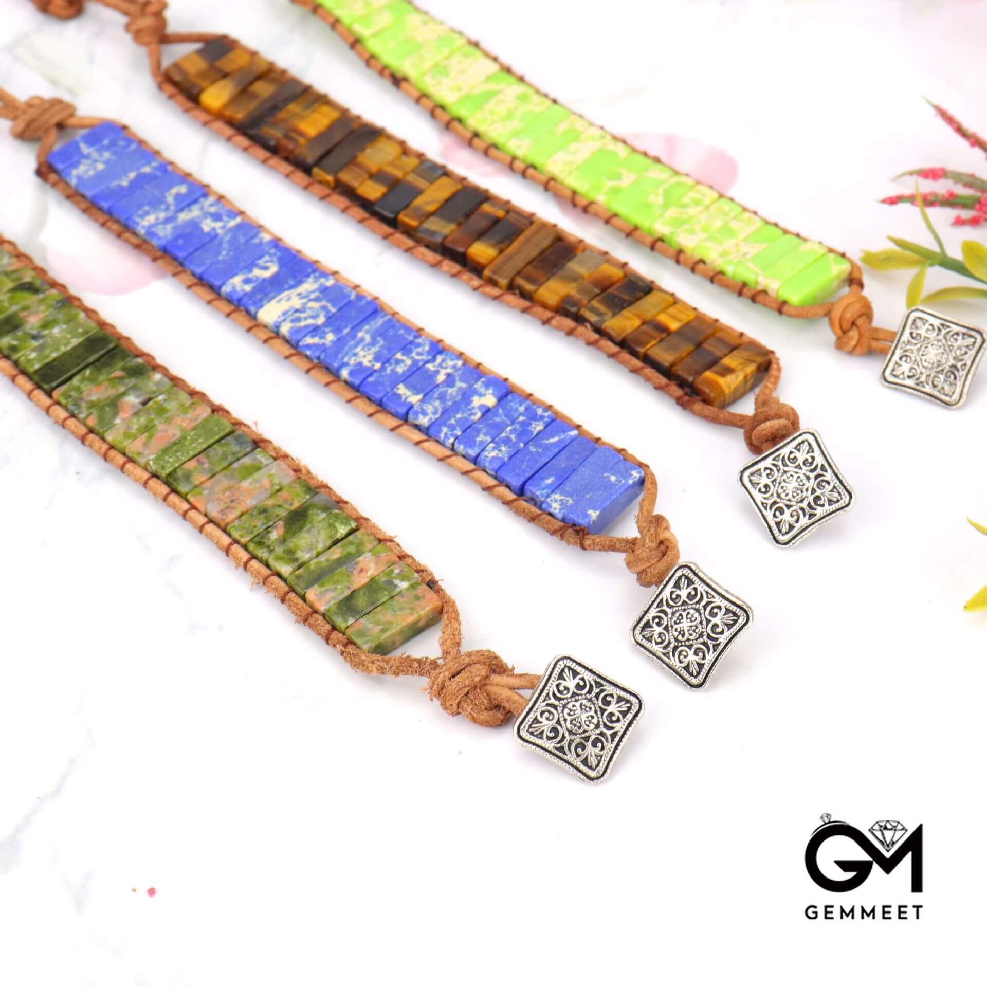 Bohemia Style Stone Brown Braided Rope Bracelet
