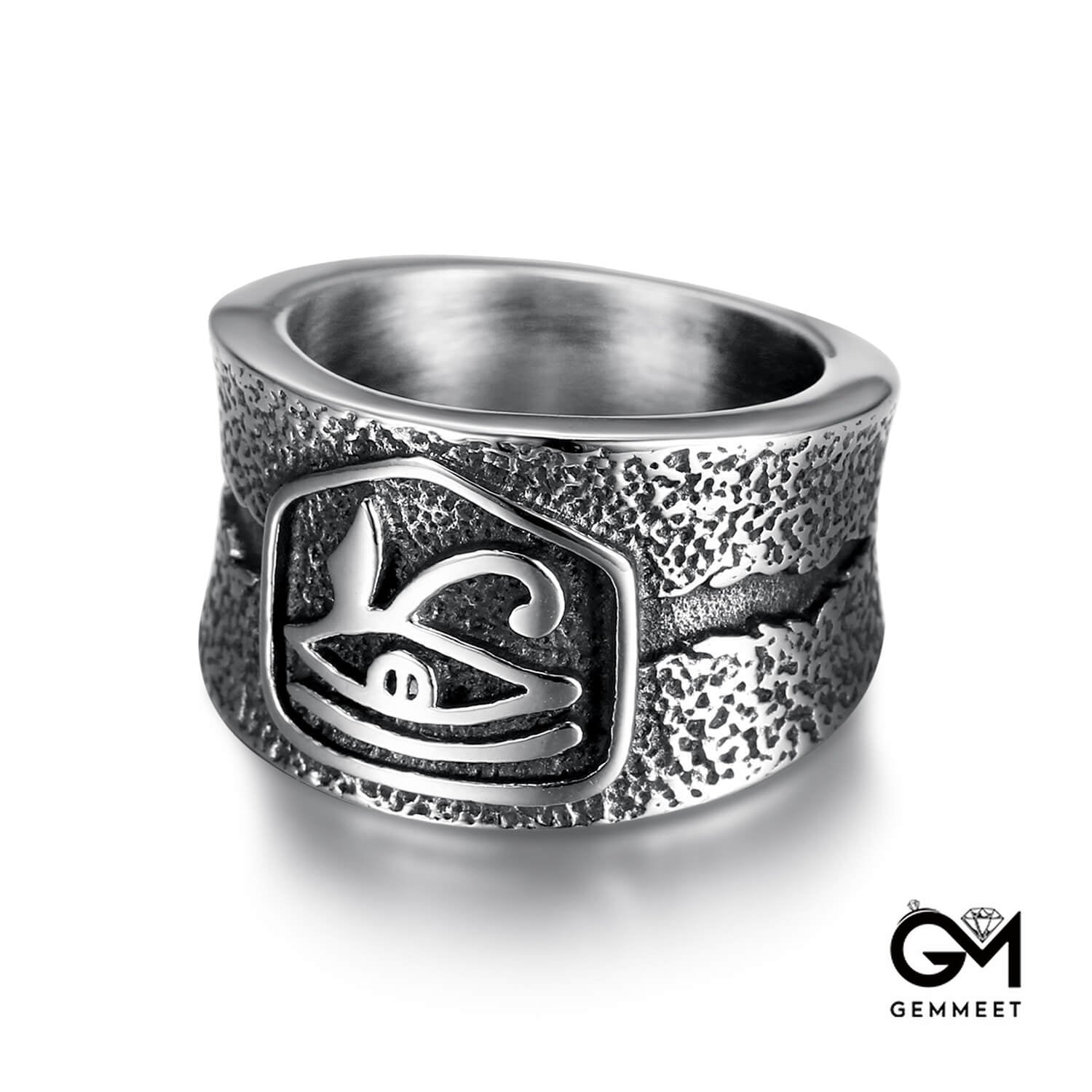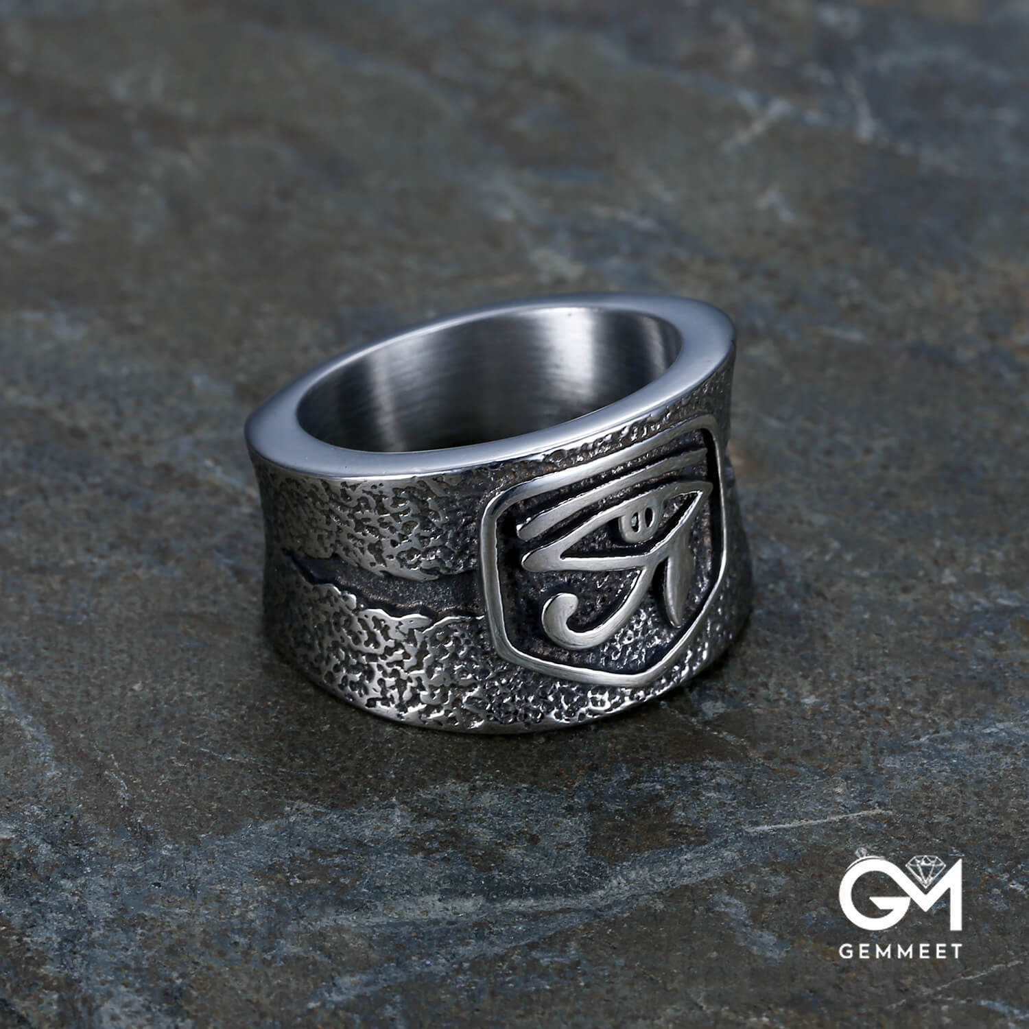 Boiled Black Polished Ancient Egyptian Eye of Horus Ring