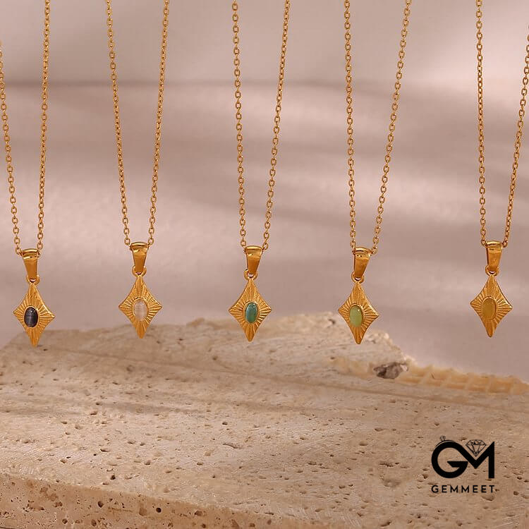 Cat's Eye Pendant Sweater Stainless Steel Necklace