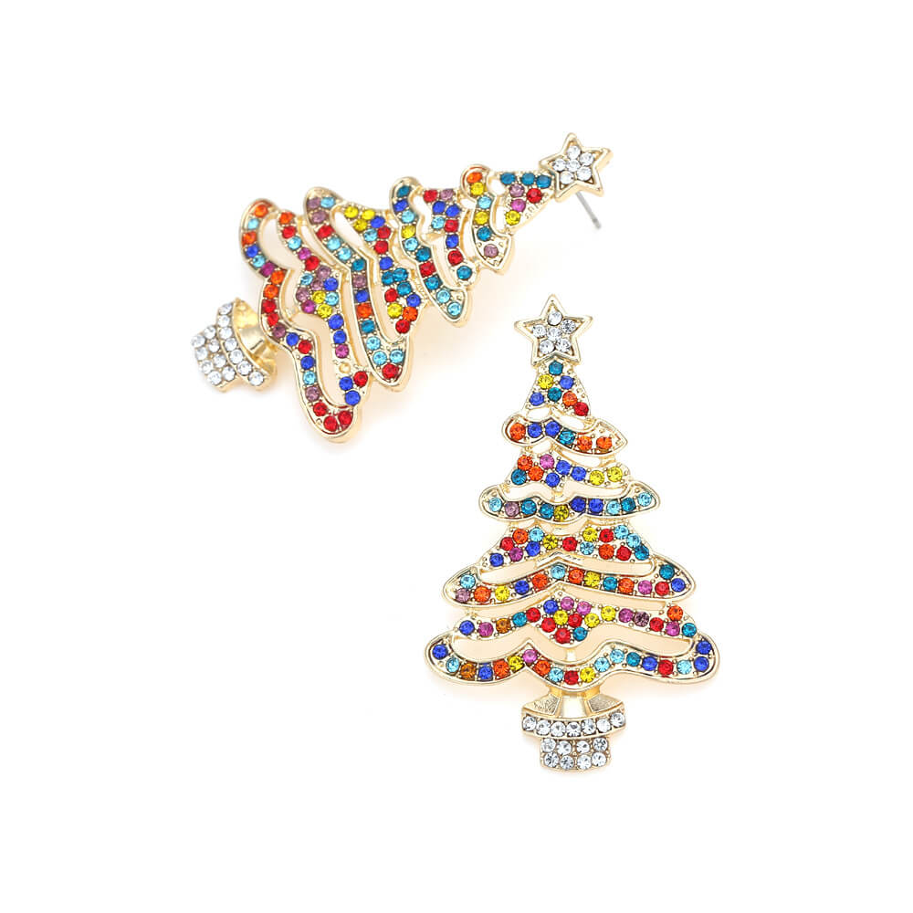 Christmas New Exaggerated Hollow Full Inlaid Zircon Christmas Tree Earrings Exaggerated Creative Flower Stud Earrings