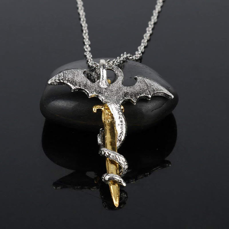 Classic Vintage Warrior Dragon Sword Necklace