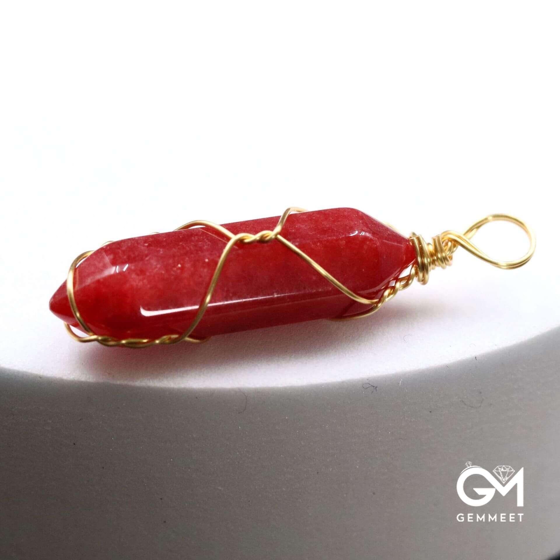 Copper Wire Wound Hexagon Column Crystal Bullet Pendant