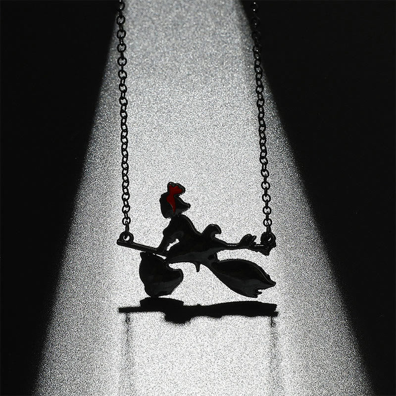 Cute Black Cat Hanging Witch Broom Necklace