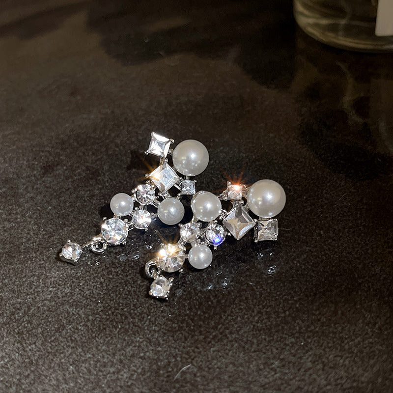 Cute Full Stones Fishtail Pearl & Flower Tassel Earrings