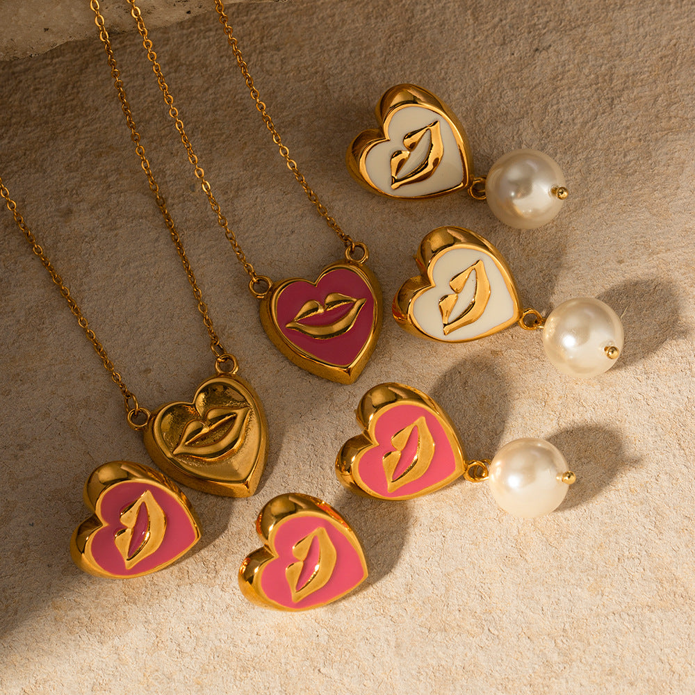 Cute Heart Shape Lip Totem Pearl Dangle Earrings