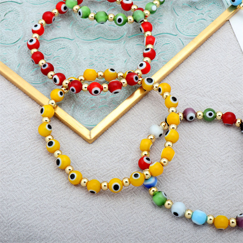 Devil's Eye Glass Copper Beaded Beaded Bracelet Handmade Stretch Rope